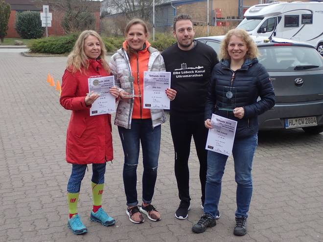 Fit in Form 17.42 Uhr Die Siegerehrung verzögerte sich etwas, weil Organisator Tobias etwas länger auf der Strecke war als geplant. Die TOP'3 Damen von links nach rechts: 3. Stephanie Wulke-Borchert |