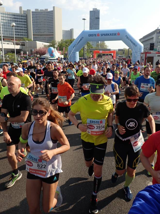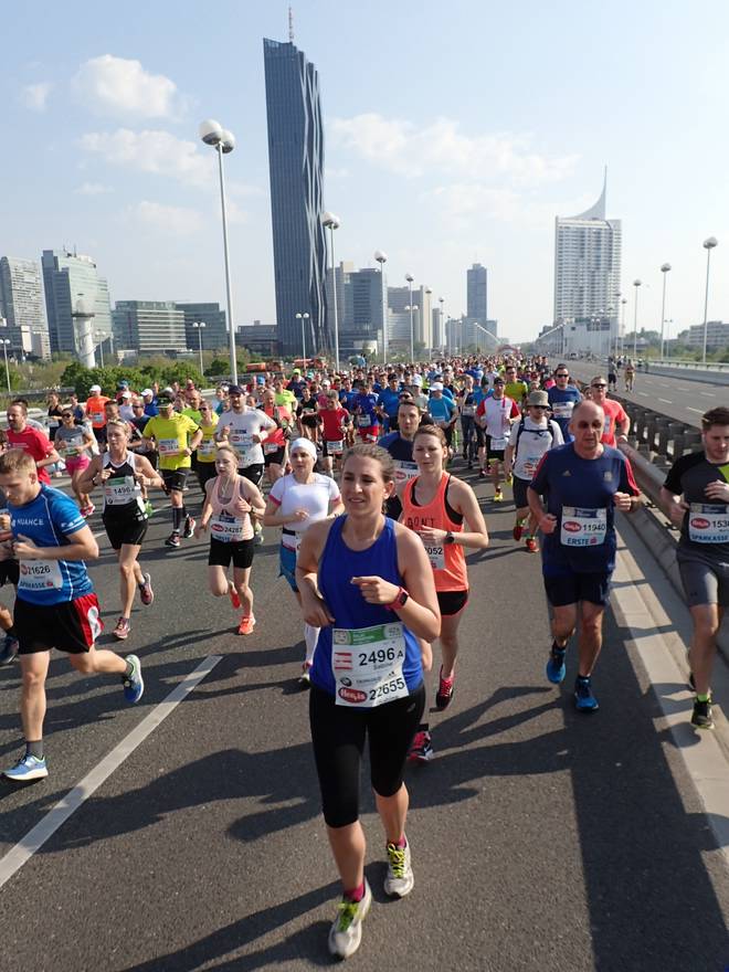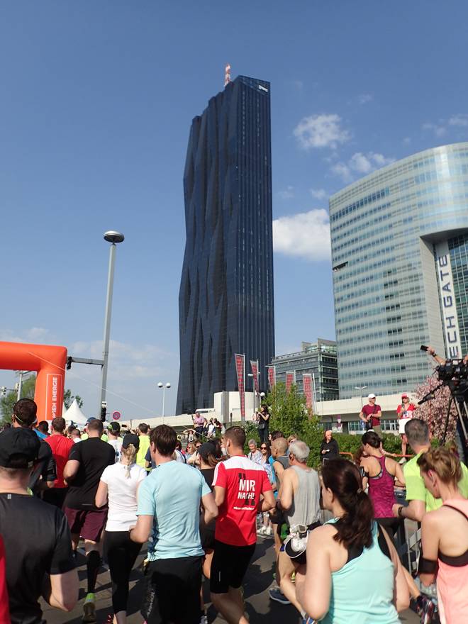 Wagramer Straße 9.22 Uhr Die Läufermasse schob sich langsam an den imposanten Gebäuden der UNO City vorbei. |
