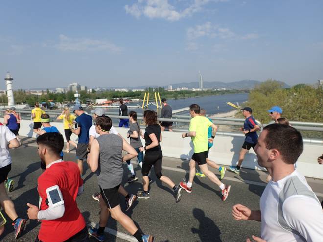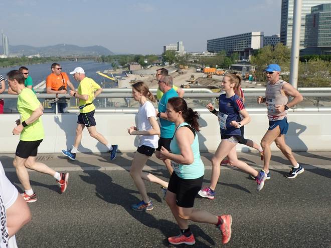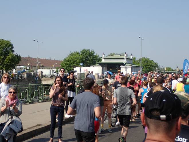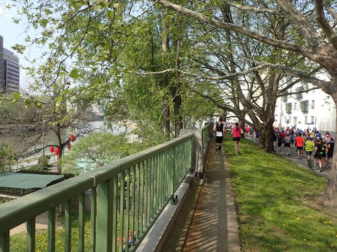 Untere Donaustraße 10.14 Uhr / Km 8,8 Einige verzweifelte Läufer rannte sogar noch auf der Schrägen weiter. Aber das wollte ich meinen Knöcheln nicht antun. |