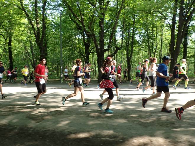 Hauptallee 9.49 Uhr / Km 4,5 Das Minnie-Maus-Kostüm war deutlich luftiger als das des Dinosauriers zuvor. |