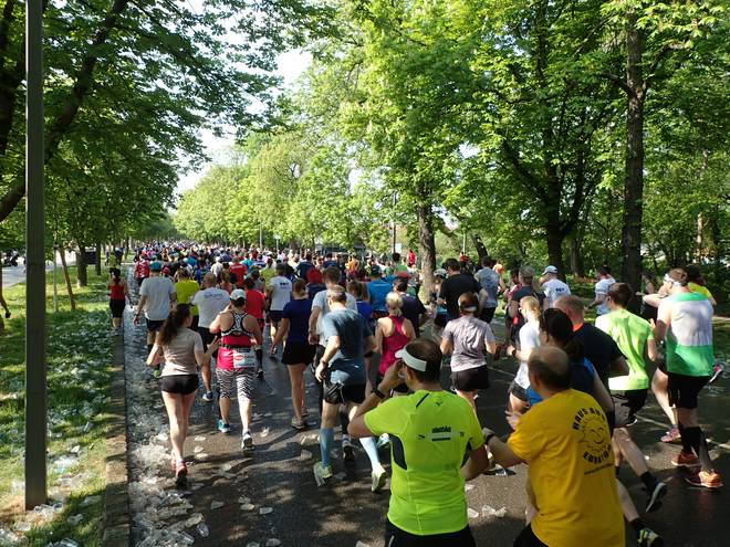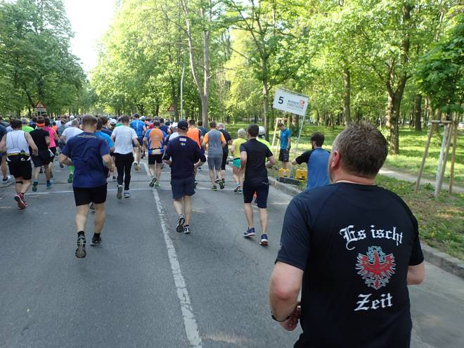 Hauptallee 9.52 Uhr / Km 5,0 29:07 Minuten für die ersten fünf Kilometer. Ich wollte eigentlich auf 28:20 Minuten und somit am Ende auf unter vier Stunden hinaus. |