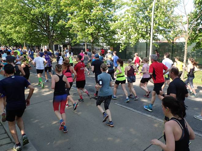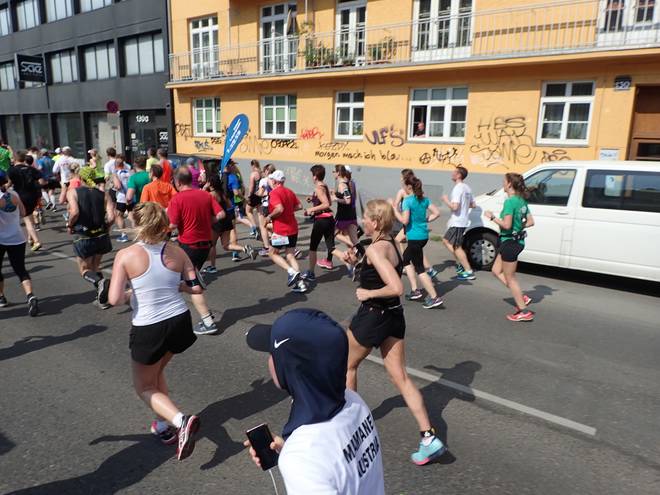 Schüttelstraße 10.07 Uhr / Km 7,5 Ich nutze jede Gelegenheit, um der Masse zu entfliehen. |