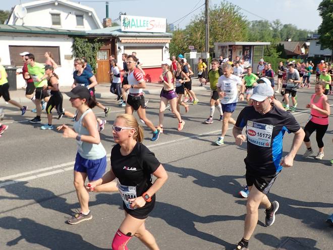 Stadionallee 9.55 Uhr / Km 5,5 Anders als erwartet wurde es nicht leerer auf der Strecke, sondern eher voller. |