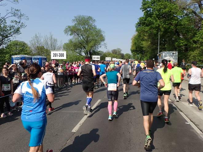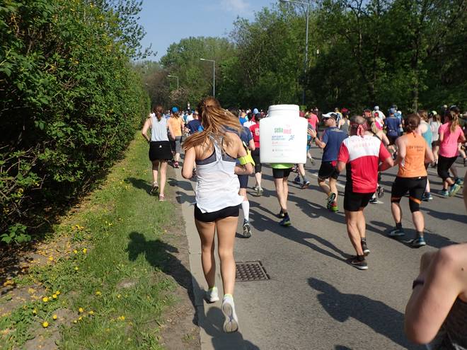 Stadionallee 9.54 Uhr / Km 5,3 Der erste Verpflegungsstand und gleich lecker Iso. Super. Acht Stück gab es davon. Alle fünf Kilometer einer. Dazu laut Ausschreibung noch "entlang der gesamten Strecke viele weitere besetzte und unbesetzte Wasserstellen". |