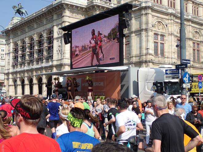 Opernring 10.25 Uhr / Km 10,7 Die Damenspitze war schon weit jenseits der Hälfte. |