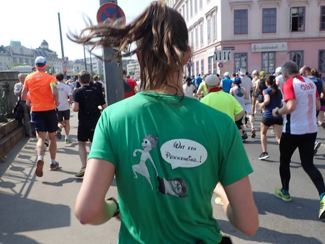 Linke Wienzeile 10.35 Uhr / Km 12,3 Pokkeneind? Die Läuferin ist Holländerin, aber damit kam ich auch nicht weiter. So viele offene Fragen. Diese hätte ich gerne beantwortet gehabt. |