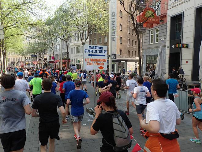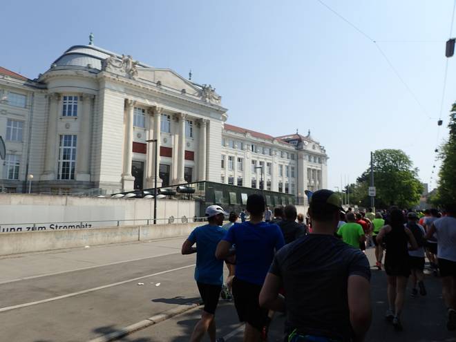 Museumsplatz 11.18 Uhr / Km 20,0 Ich lief weiter und war gleich ziemlich verdattert. Die gefühlt doch so schnellen vierten fünf Kilometer waren 18 Sekunden langsamer (!!) als die wuhligen fünf Kilometer davor. 28:41 Minuten. Mit 1:55:24 Stunden lag ich nun 2:04 Minuten hinter dem Plan zurück. |