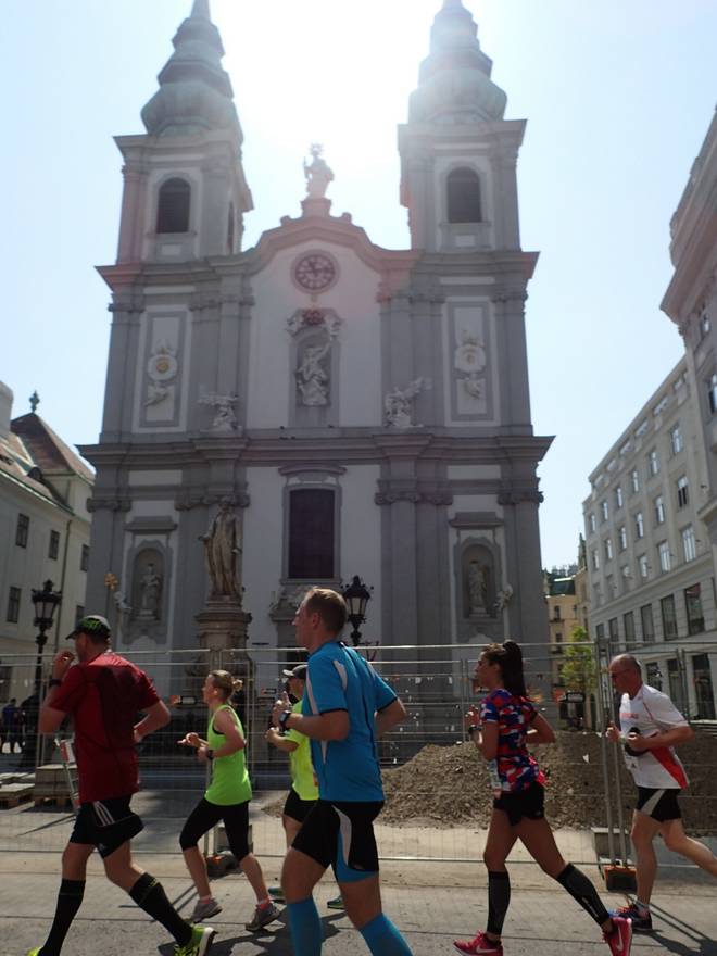 Stubenring 10.17 Uhr / Km 9,4 Es war halt heiß. Vor allen war es die erste heiße Phase des Jahres. Drei Wochen zuvor war ich noch im Schnee gelaufen. Wann hätte man sich da an Wärme jeglicher Art gewöhnen sollen? |