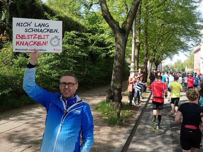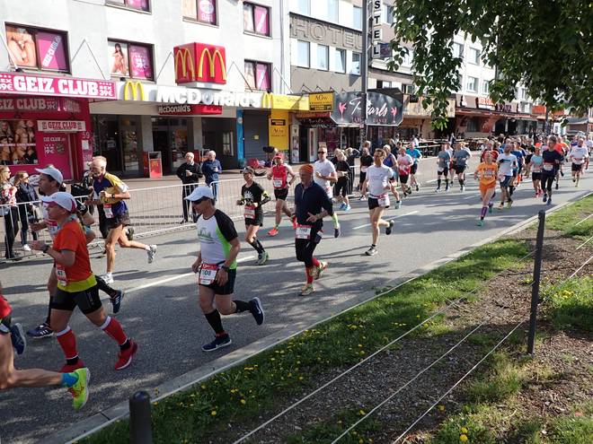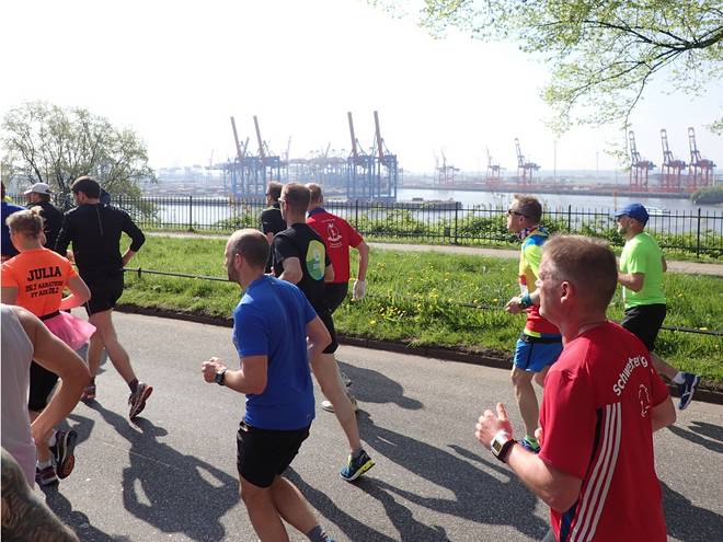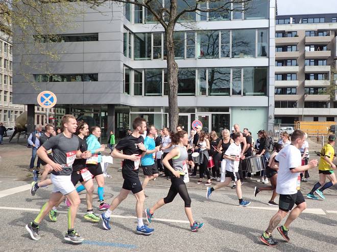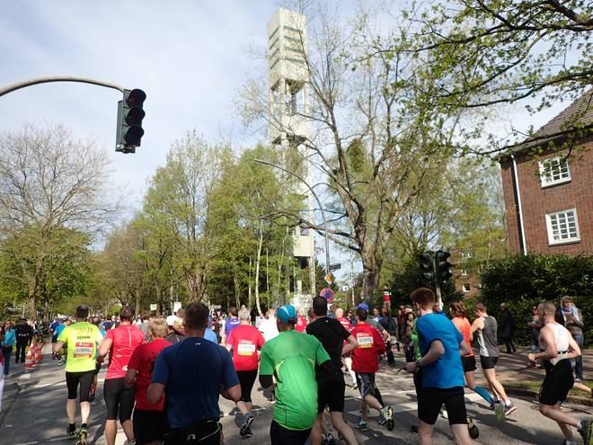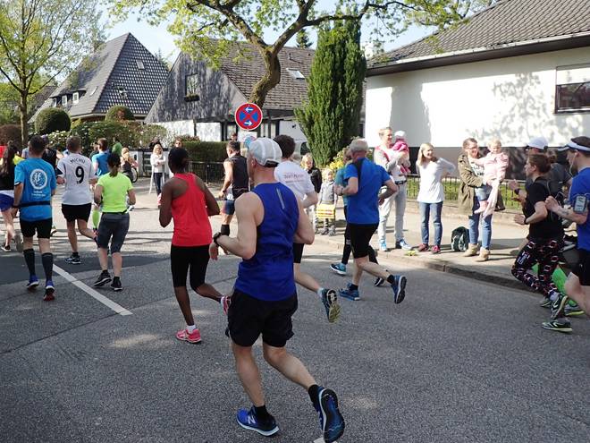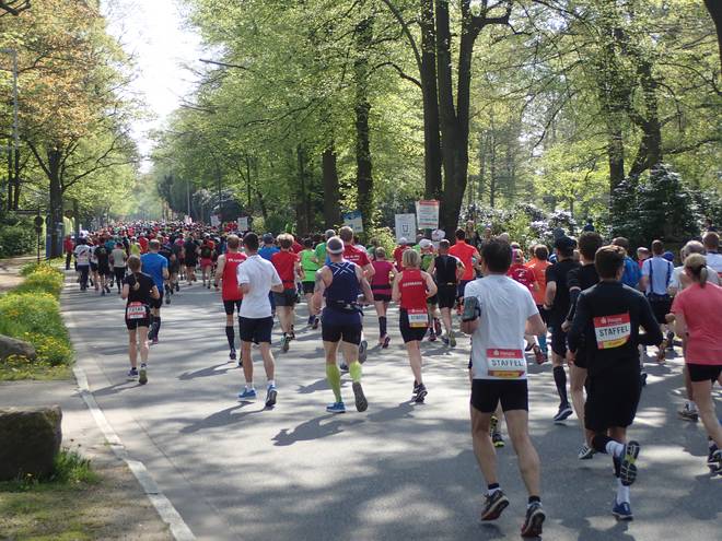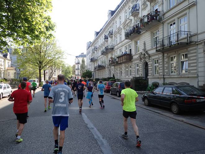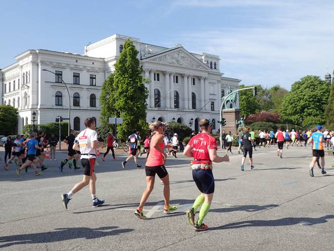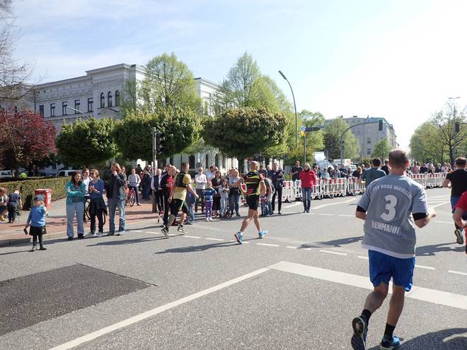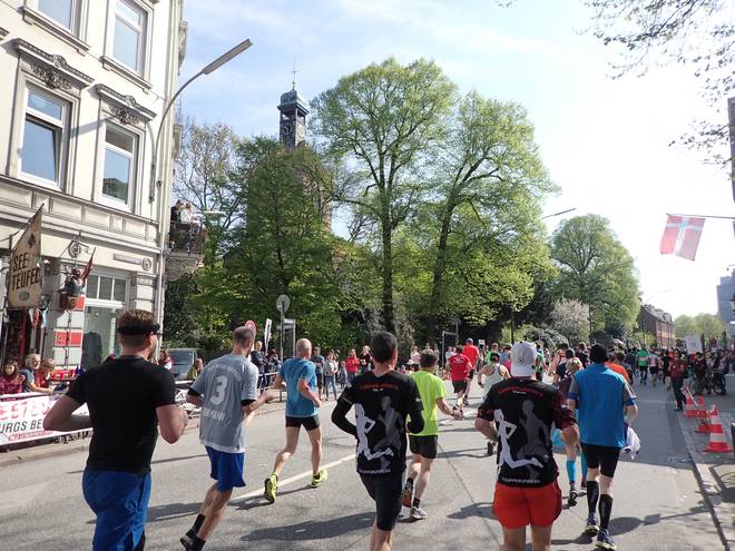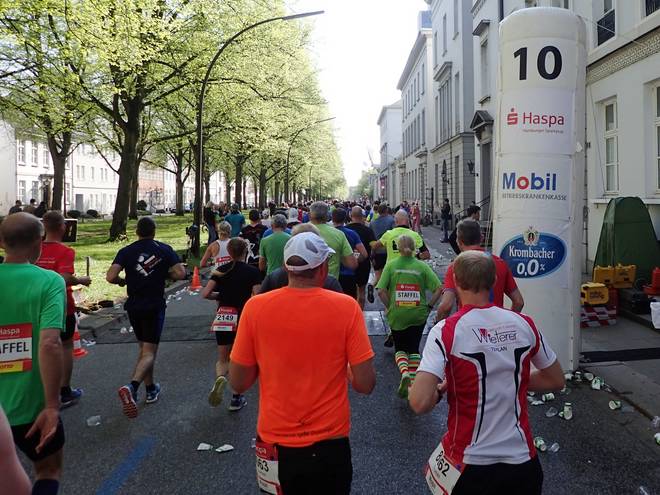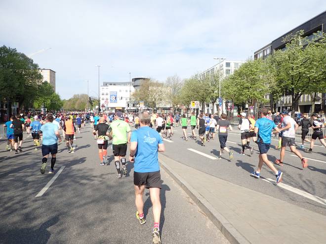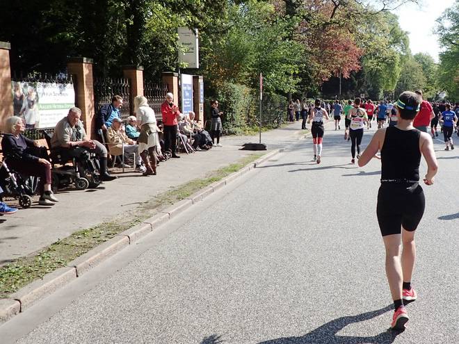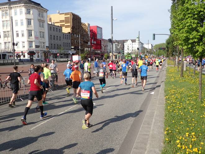 Palmaille 10.32 Uhr / Km 10,0 56:45 Minuten für die zehn Kilometer. Fünf Sekunden langsamer als der geplante Schnitt. |