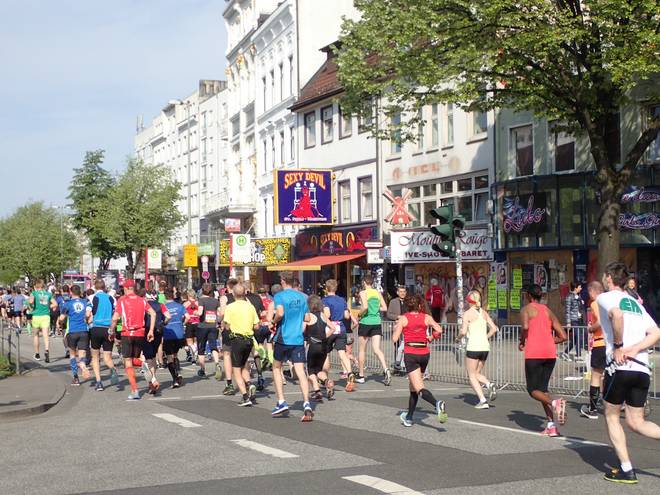 Reeperbahn 9.43 Uhr / Km 1,2 In Wien war ich damit total gescheitert. Und Hamburg? |