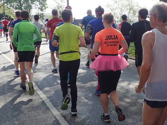Holländische Reihe 9.57 Uhr / Km 3,8 Und dann durch die erste enge Stelle des Kurses, wobei das Gedrängel auch schon mal schlimmer war. |