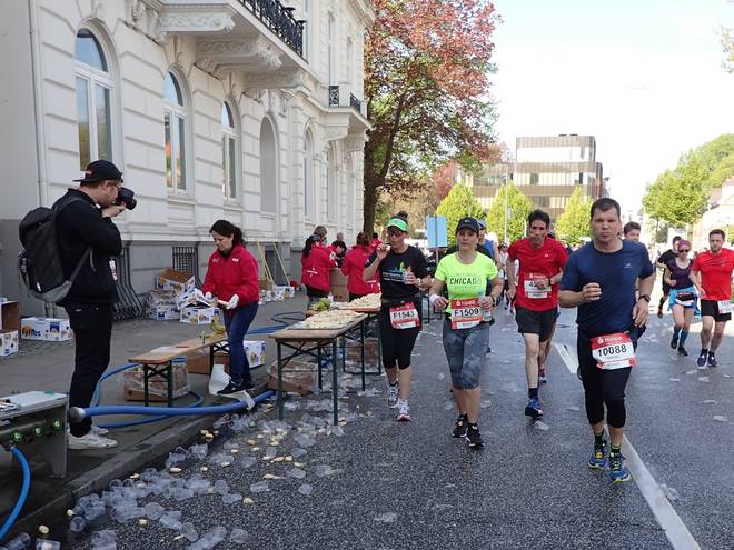 Willy-Brandt-Straße 10.58 Uhr / Km 14,4 Letzter Verpflegungsstand vor dem Wallringtunnel. |