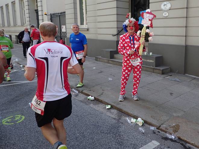 Reeperbahn 9.45 Uhr / Km 1,6 Man läßt sich zu sehr von der Masse mitziehen. |