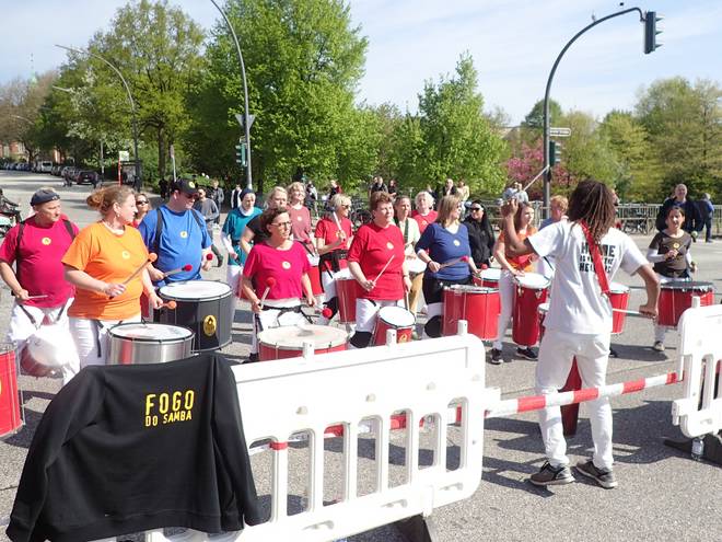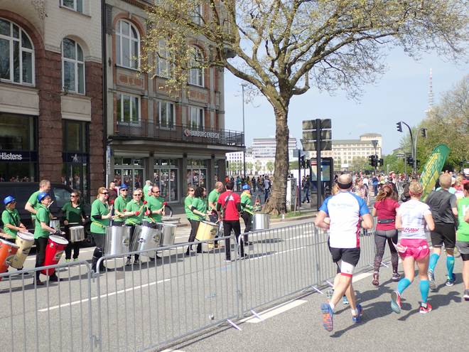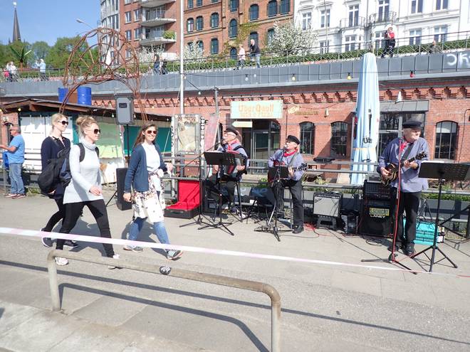 St. Pauli Fischmarkt 10.40 Uhr / Km 11,4 Auch Musik war wieder vor Ort. |