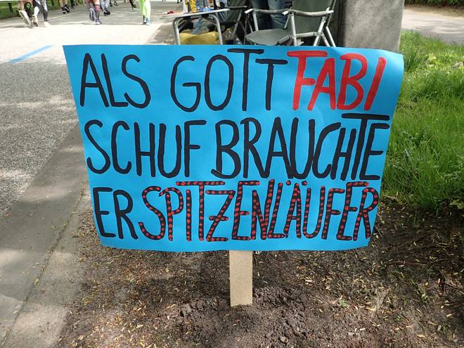 Rathenaustraße 12.28 Uhr / Km 30,1 Wenn der Fabi so spitze ist, dann war er schon lange hier durch. |