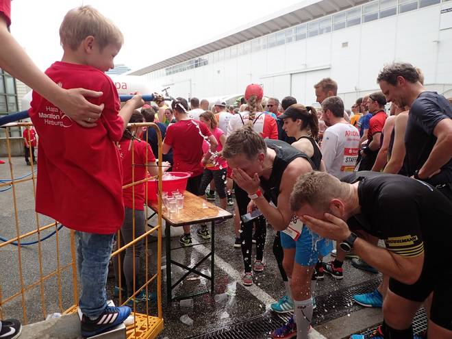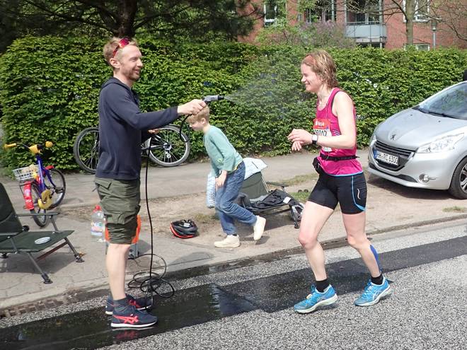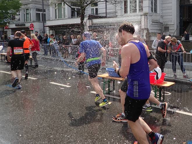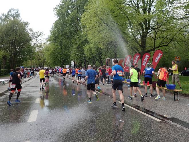 Eppendorfer Baum 13.08 Uhr / Km 37,4 Und schon wieder Wasser. Ich hatte längst auch nasse Füße. |