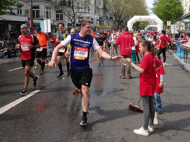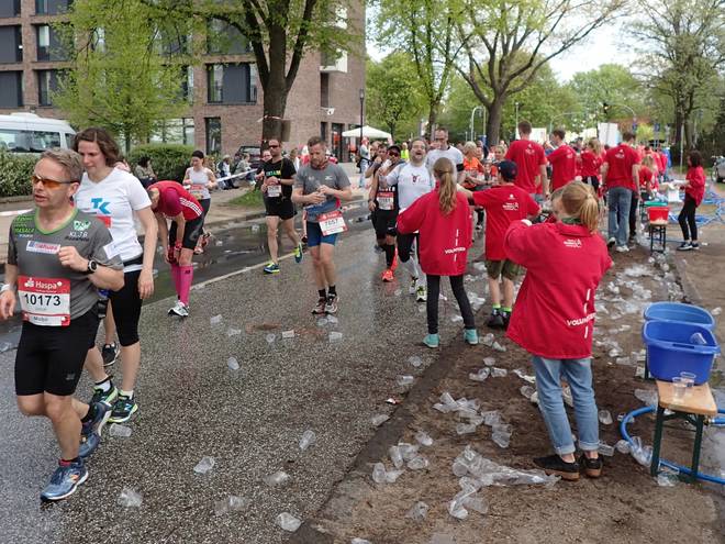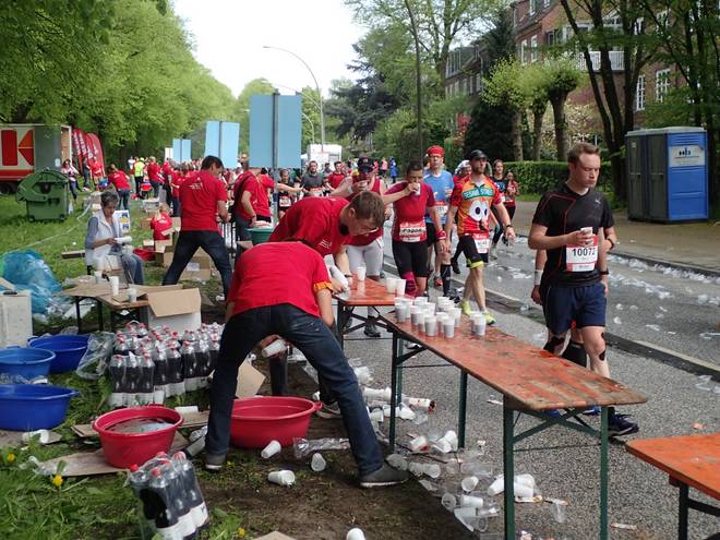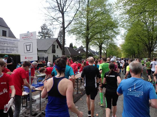 Harvestehuder Weg Mittelweg 13.21 Uhr / Km 39,8 Und es gibt noch einen letzten Verpflegungsstand. Noch zwei Becher Cola und weiter. |