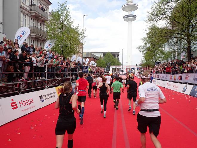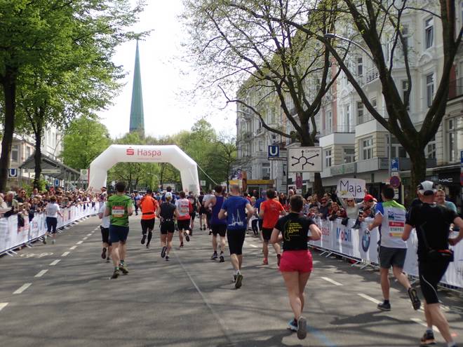 Dammtordamm 14.23 Uhr Durfte 2017 der letzte Läufer noch nach 6:49:32 Stunden brutto (netto 6:38:38 Stunden) ins Ziel, war dieses Jahr nach 6:24:48 Stunden Schluß (netto 6:11:22 Stunden). |