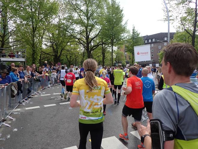 Harvestehuder Weg 13.11 Uhr / Km 38,0 Selfie am Kilometer 38? Naja. Manche Leute machen ja von allem Fotos. |