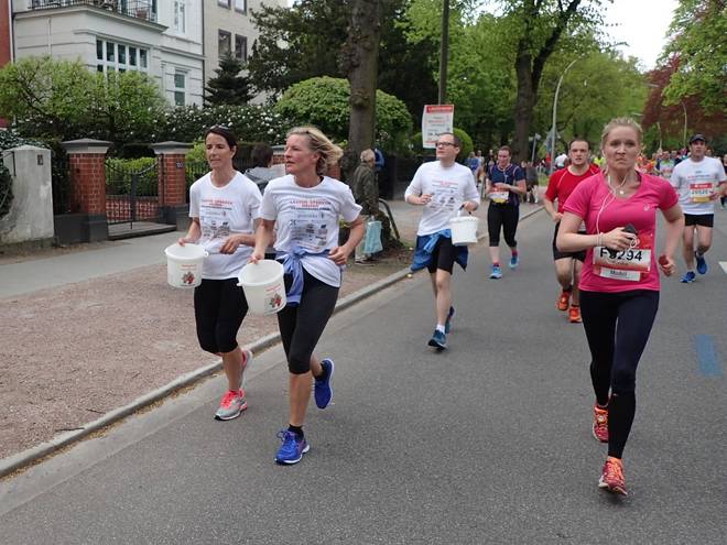 Harvestehuder Weg 13.10 Uhr / Km 37,8 Immer wenn ich Geld dabei habe, treffe ich die Phönikks-Sammler nicht. Und wenn ich sie treffe, habe ich kein Geld dabei. Aber spenden kann man auch nach dem Lauf. |