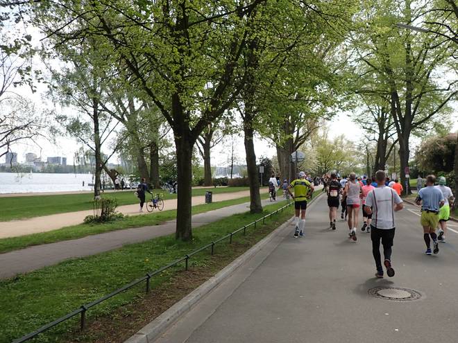 Harvestehuder Weg 13.18 Uhr / Km 39,3 Kurzer Blick links auf die Außenalster, ehe es gleich rechts ab ging. |