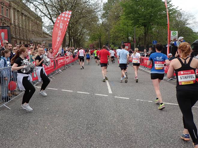 Sievekingplatz 13.31 Uhr / Km 41,8 So ging es im hohen Tempo an der Zone vorbei, wo sich die Staffeln für den Zieleinlauf zusammen finden können. |