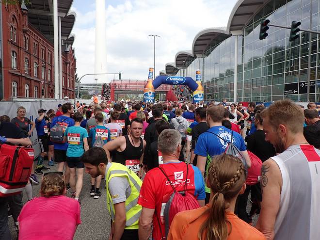 Hamburg Messe 14.03 Uhr Vom neuen Halbmarathon war mit Ausnahme der 30 Minuten späteren Startzeit nichts zu merken. Zumindest nicht im Feld vorne. Hinten schon. Irgendwo wollte man die 30 Minuten offenbar dann doch wieder einsparen. |