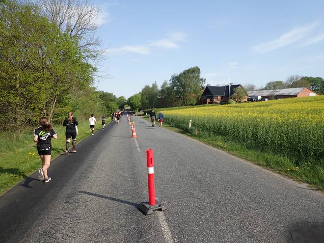 Daugbjerg Kalkgruber 9.43 Uhr / Km 24,8 Nur daß man hier natürlich nicht überholen konnte und alles sich am langsamsten Läufer orientierte. |
