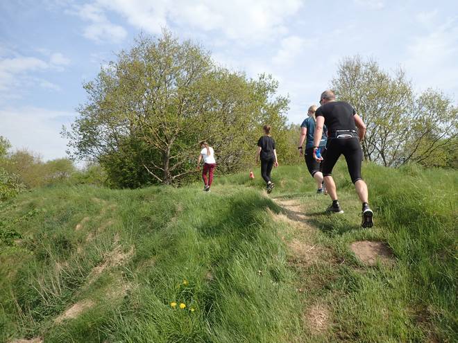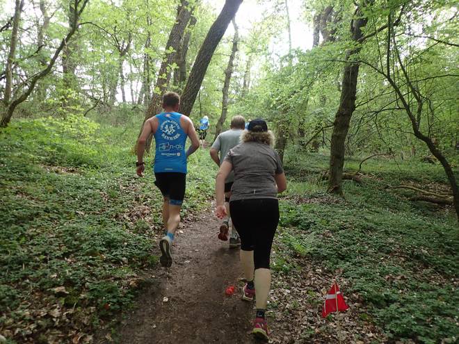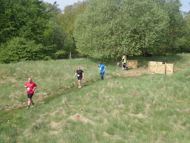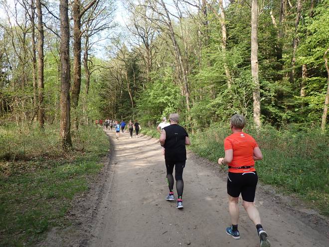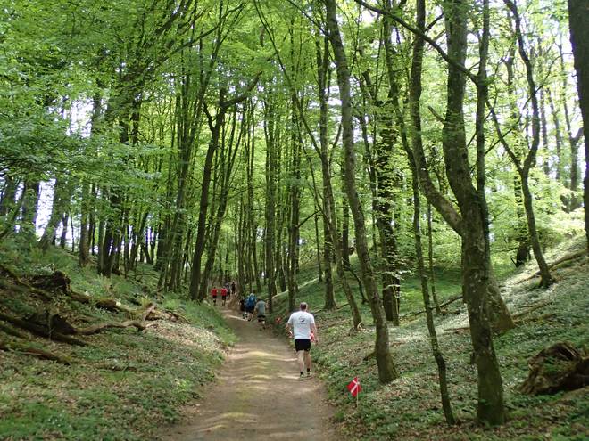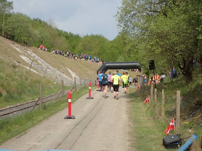 Mønsted Kalkgruber 10.21 Uhr / Km 29,6 Mit vielen Leute dauerte der Anstieg immer länger. Irgend ein Läufer hält den Verkehr immer auf. |