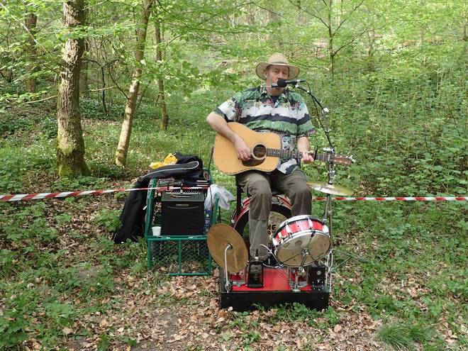 9.38 Uhr / Km 24,5 Musik im Wald. Gute Idee. |