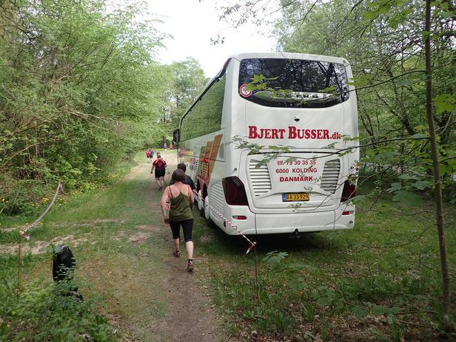 10.17 Uhr / Km 29,3 Bei Mønsted standen nun schon die Reisebusse. Parkplätze gab es reichlich. Mønstedw Kalkgruben sind auch Attraktionen, wenn mal gerade nicht gelaufen wird. |