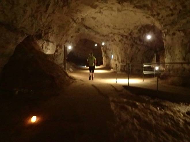 Mønsted Kalkgruber 10.32 Uhr / Km 31,0 Jetzt waren die 8°C in der Grube auch spürbar kälter gegenüber der Temperatur draußen. Es war aber eine willkommene Abkühlung. |
