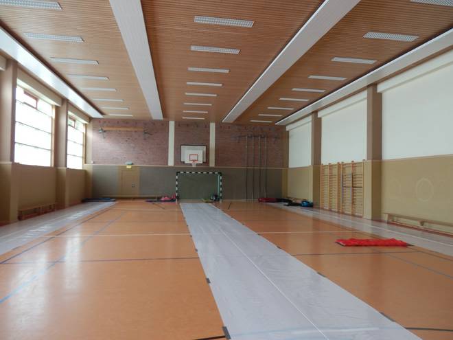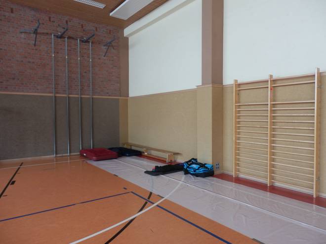 Guts-Muths-Halle 15.56 Uhr Auch in der Turnhalle war nichts los. Die Marathon-Messe war ein Witz und auch hier gab es keine Souvenirs oder was man dafür halten könnte. |