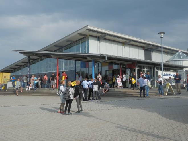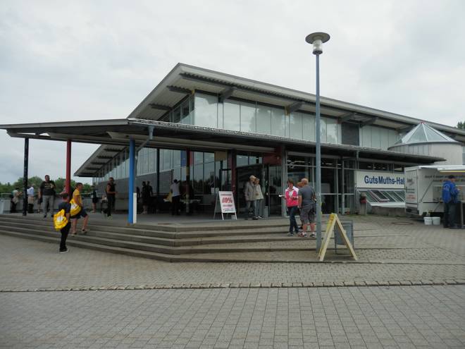 Guts-Muths-Halle 18.19 Uhr Das reichte mir für einen Tag. Jetzt noch schnell eine (nicht abgeschlossene) Toilette suchen und dann brauchte ich dringend mal Schlaf. |