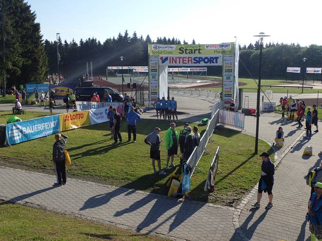 Freisportanlage am Apelsberg 9.01 Uhr Aber mal schauen, wie schön die 42,195 Kilometer beim Rennsteiglauf-Marathon so werden würden. |