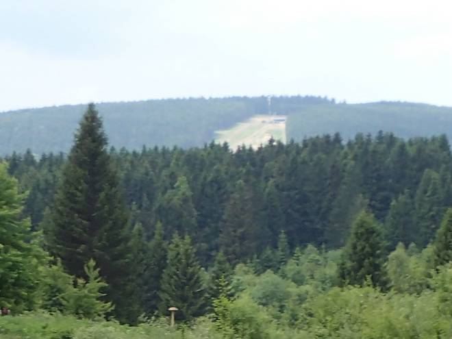 Schwarzwasserstraße Frauenwalder Straße 13.32 Uhr / Km 39,5 Beim Supermarathon kommt man da drei Kilometer vorbei und läuft einmal quer rüber. Mit schönem Blick runter auf Schmiedefeld. |