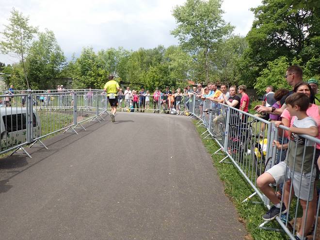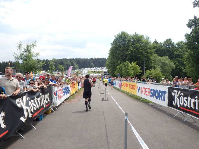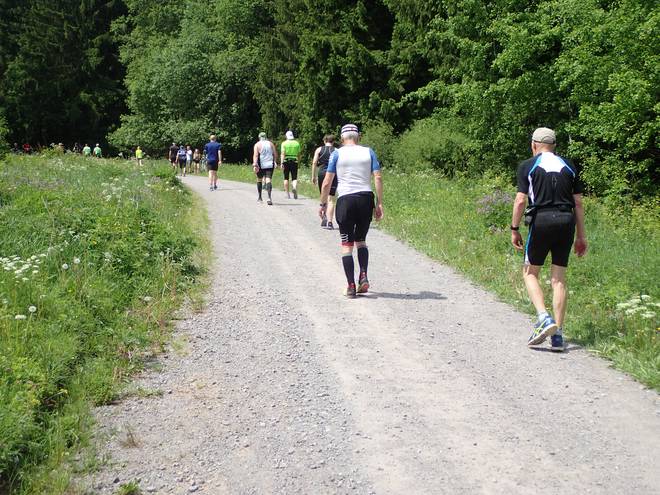 Frauenwalder Straße 13.38 Uhr / Km 40,7 Dann kamen mir die ersten Finisher entgegen. Sehr weit konnte es nicht mehr sein. |