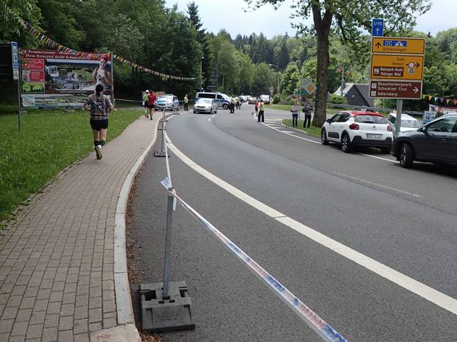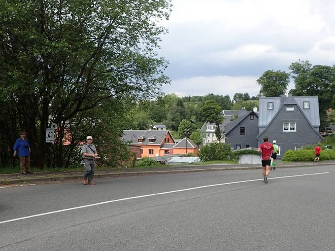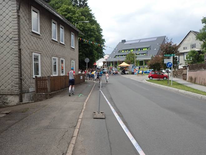 Sportplatzstraße Schmiedefeld am Rennsteig 13.46 Uhr / Km 42,0 |
