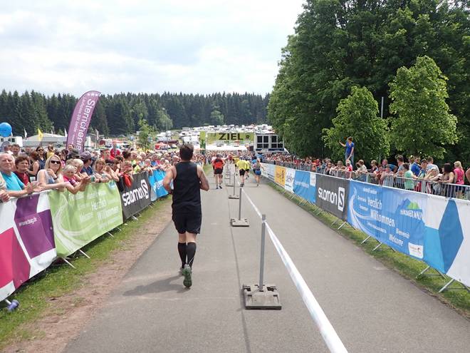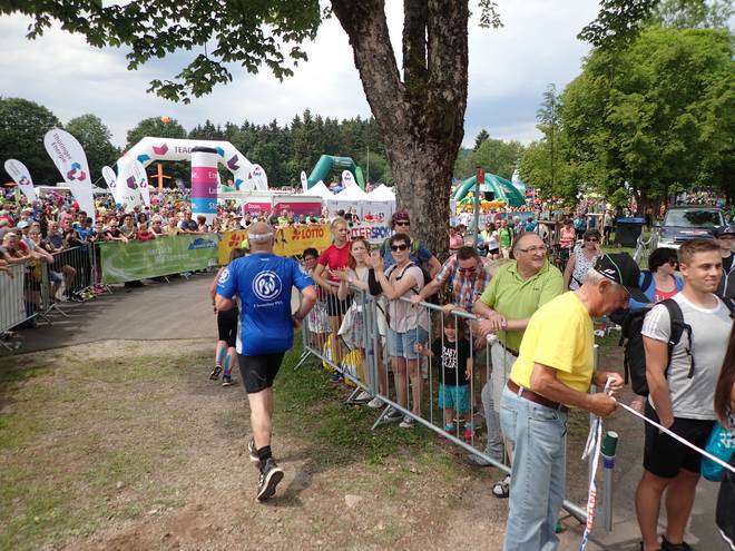 Sportplatz Schmiedefeld Schmiedefeld am Rennsteig 13.46 Uhr / Km 42,1 Wozu auch einen Endspurt. Einfach genießen geht auch. |