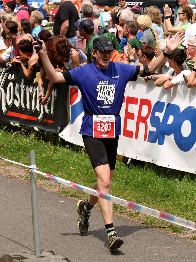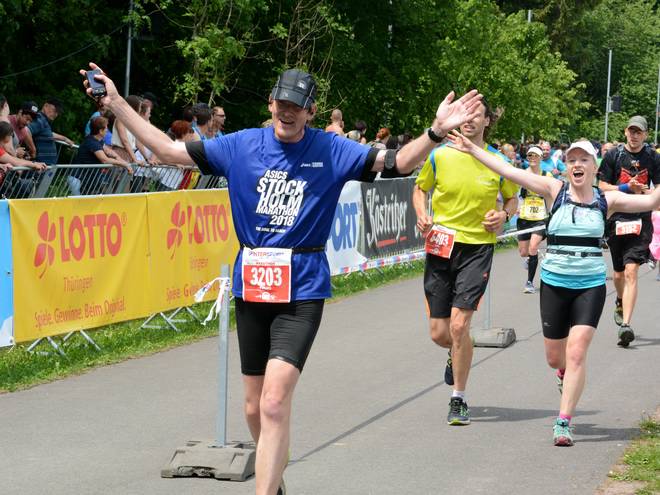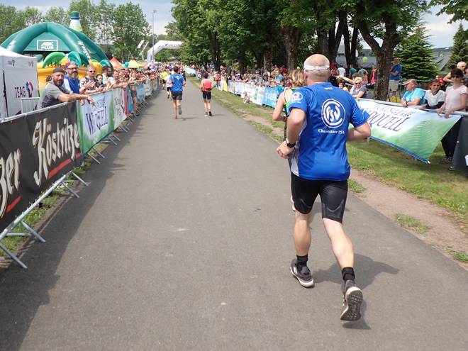 Sportplatz Schmiedefeld Schmiedefeld am Rennsteig 13.46 Uhr / Km 42,17 Da hatte ich es gleich wieder geschafft. Es war mein 249. Marathon. Eine Woche später würde ich in Stockholm (mit dem wirklich schönsten Ziel: dem Olympiastadion) meinen 250. Marathon laufen wollen. Das Ziel, die 250 in Stockholm zu laufen, hatte ich schon mehr als zwei Jahre. Dafür hatte ich die letzten fehlenden Läufe recht mutig angesetzt. Nur 5 in den ersten 13 Wochen des Jahres 2018, dann kamen 7 in nur 5 Wochen und den letzten fehlenden hier nur sieben Tage vor Stockholm. Foto: Foto-Team-Müller |