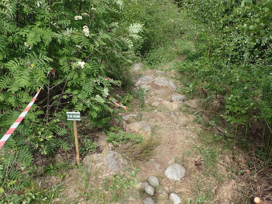 ![]() 14.31 Uhr Irgendwo waren hier die Strecken des 12k, des 25k und des 52k zusammen getroffen. Nun führten die Strecke gemeinsam ins Ziel. Demnach waren es noch drei Kilometer auf dem 25k, vier Kilometer auf dem 52k und ausgehend vom Kilometer 6 noch fast fünf Kilometer auf dem 12k. Dann war ja alles klar. |
