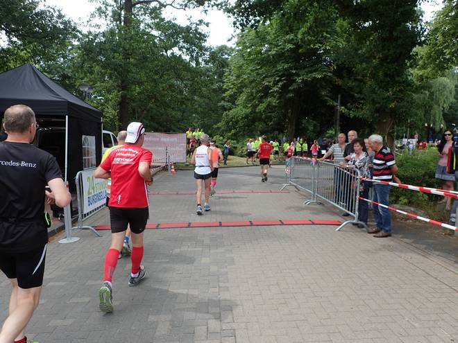 Runde 5 (6,027 Km) 12.35 Uhr Während ich in Berlin ja ins Ziel kommen mußte, um die Medaille zu bekommen, hatte ich sie hier schon nach einer Runde sicher. Tatsächlich bekam sie später jeder, der den Zeit-Chip wieder abgab. |