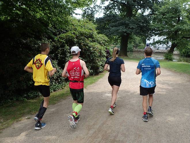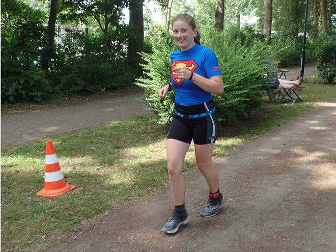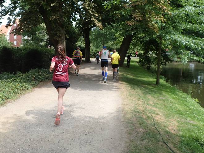 Runde 1 (1,205 Km) 12.08 Uhr Nach 8:24 Minuten hatte ich meine erste Runde fertig. Gut 100 Meter zuvor wurde ich erstmals von einer Staffel überrundet. Schon während der ersten Runde. |