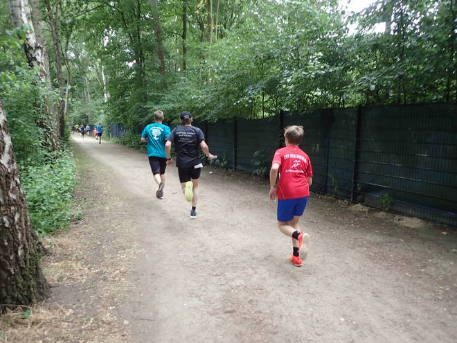 Runde 20 (24,106 Km) 14.44 Uhr Auf der Strecke war es nun noch voller. Um 14.30 Uhr waren 36 weitere Staffeln gestartet. 28 Schüler-Teams und 8 Lebenshilfe-Teams. |