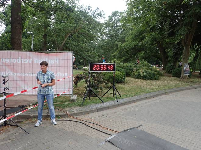 Runde 20 (24,106 Km) 14.42 Uhr Anfang der Runde 20 machte ich noch einen Abstecher zum Dixi. Das half aber auch nicht. Dieses Mal war der Magen wohl wirklich kaputt. |