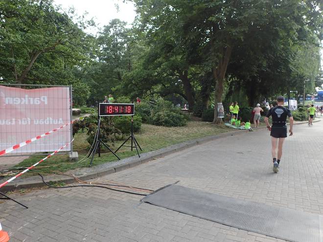 Runde 10 (12,053 Km) 13.22 Uhr Nach zehn Runden lag ich auf Platz 17 meiner Altersklasse. So ein Pokal schien dann doch schwieriger erreichbar als gedacht. Aber es war ja noch viel Zeit, das Feld von hinten aufzurollen. Die erwähnten 37 Zentimeter, die die Runde länger als 1205 Meter war, wurde von der Elektronik hier noch nicht erfaßt. |