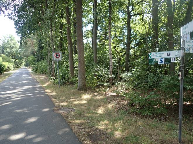 Inzmühlen Wehlener Weg 14.53 Uhr / Km 37 Hier ging es tatsächlich lang. Nach Undeloh gab es auch ein Schild, aber in eine andere Richtung. |