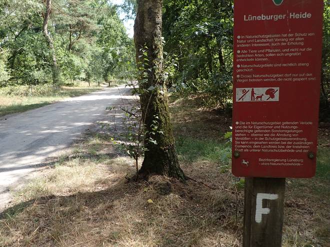 Wehlener Weg 14.57 Uhr / Km 37 Dann hießt es: Willkommen in der Lüneburger Heide. Hier war aber nichts verboten, was ich zum Laufen brauchte. |