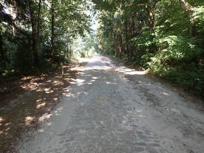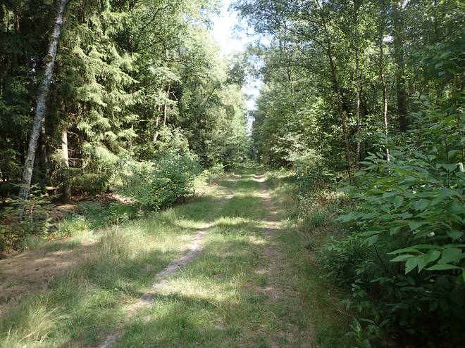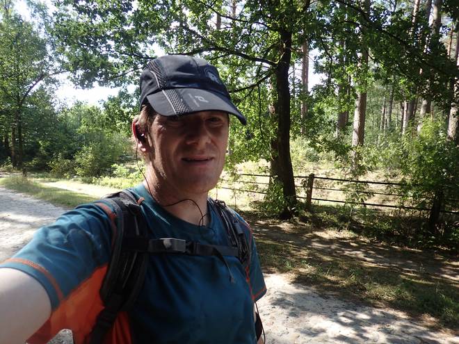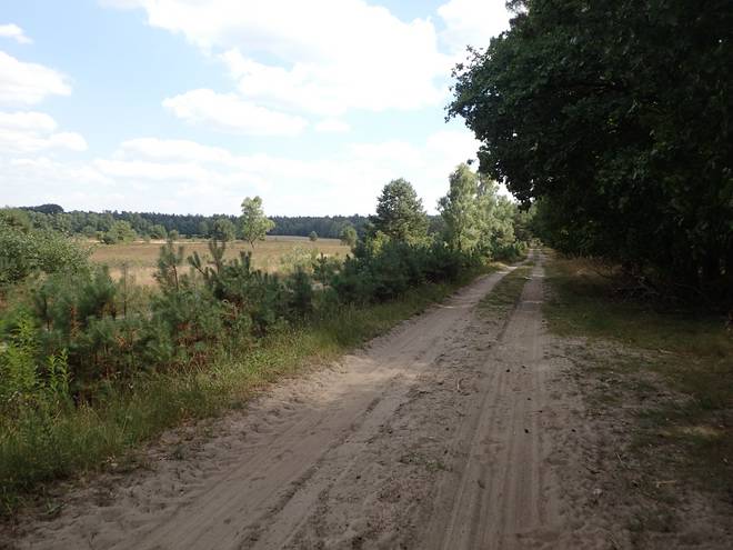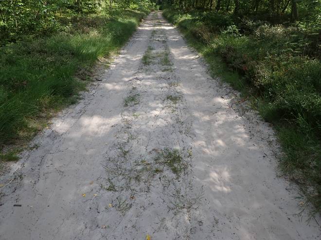 15.04 Uhr / Km 38 Der Untergrund wechselte von Sand zu Waldweg zu Gras und zurück. |