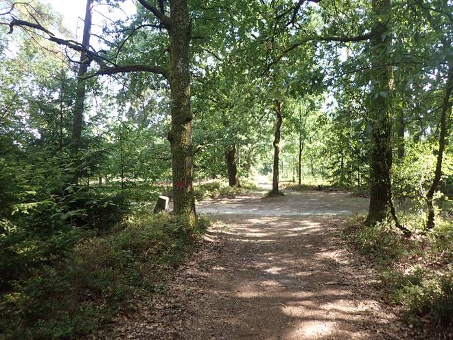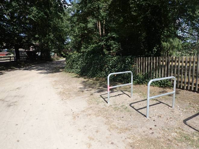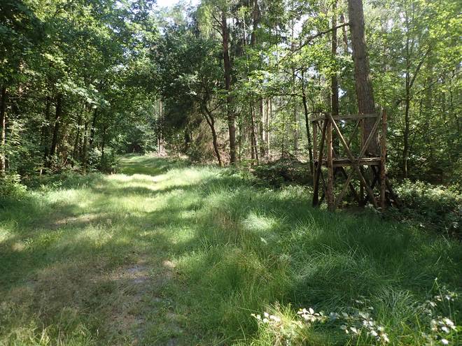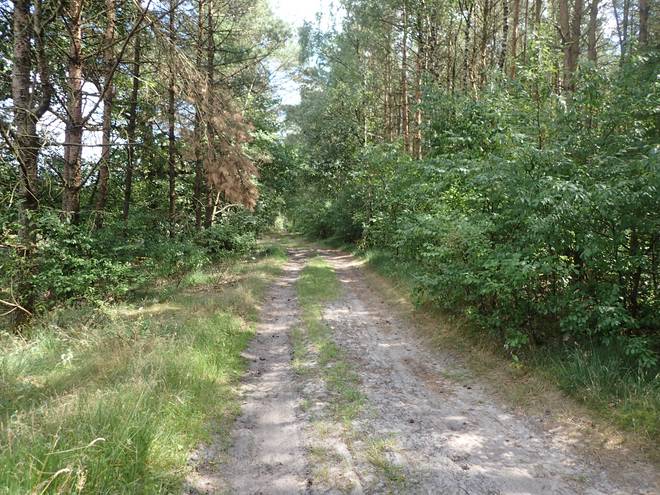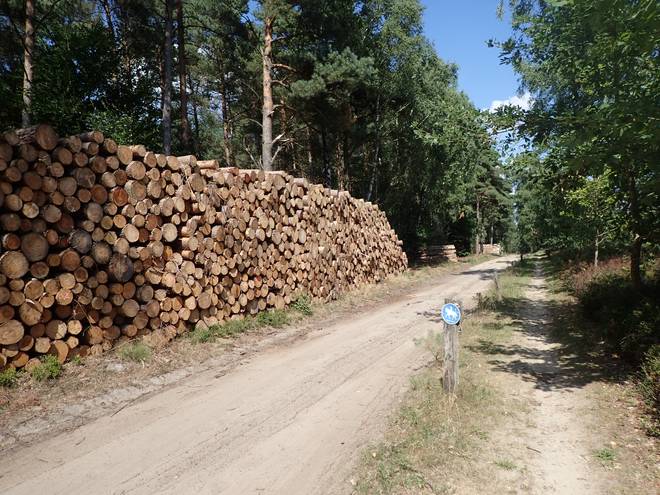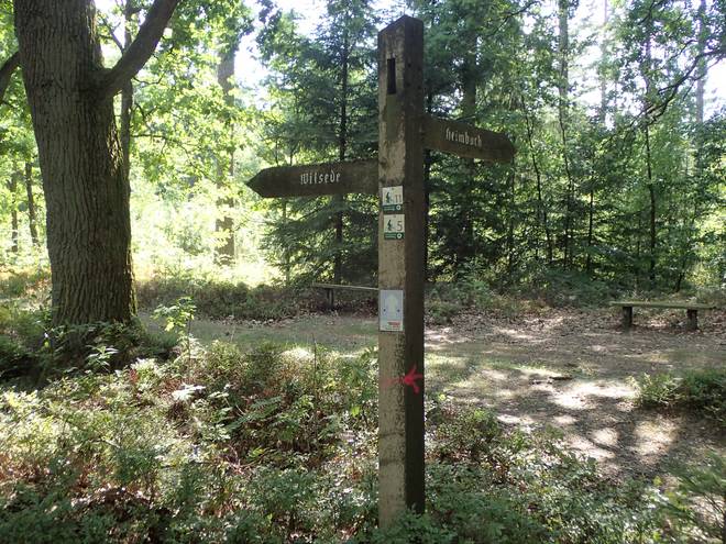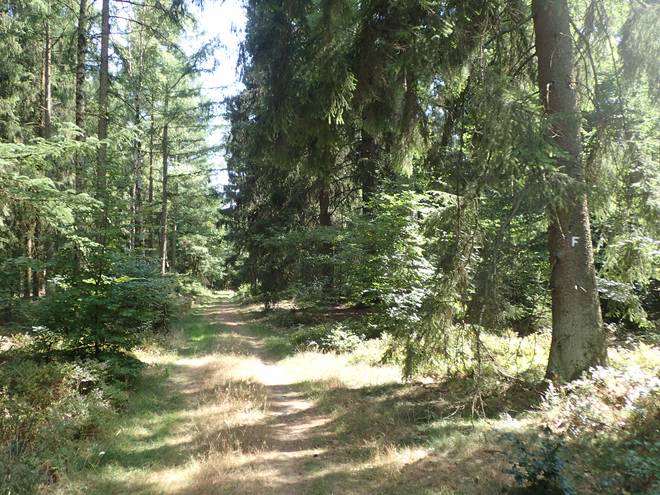 Meninger Holz 15.42 Uhr / Km 44 Undeloh. 2,8 Kilometer. Aber immer noch nicht der richtige Abzweig. Der war nämlich von Christian speziell markiert. Außerdem wäre es von dort nach Undeloh dann nur noch 1,7 Kilometer. |